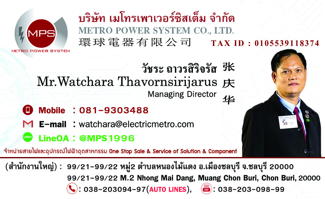 Metro Power System สำนักงานใหญ่ ชลบุรี (Head office)99/21-99/22 หมู่2 ตำบลหนองไม้แดง อ.เมืองชลบุรี จ.ชลบุรี 20000 99/21-99/22 M.2 Nong Mai Daeng, Muang Chon Buri, Chon Buri, 20000, Thailand |